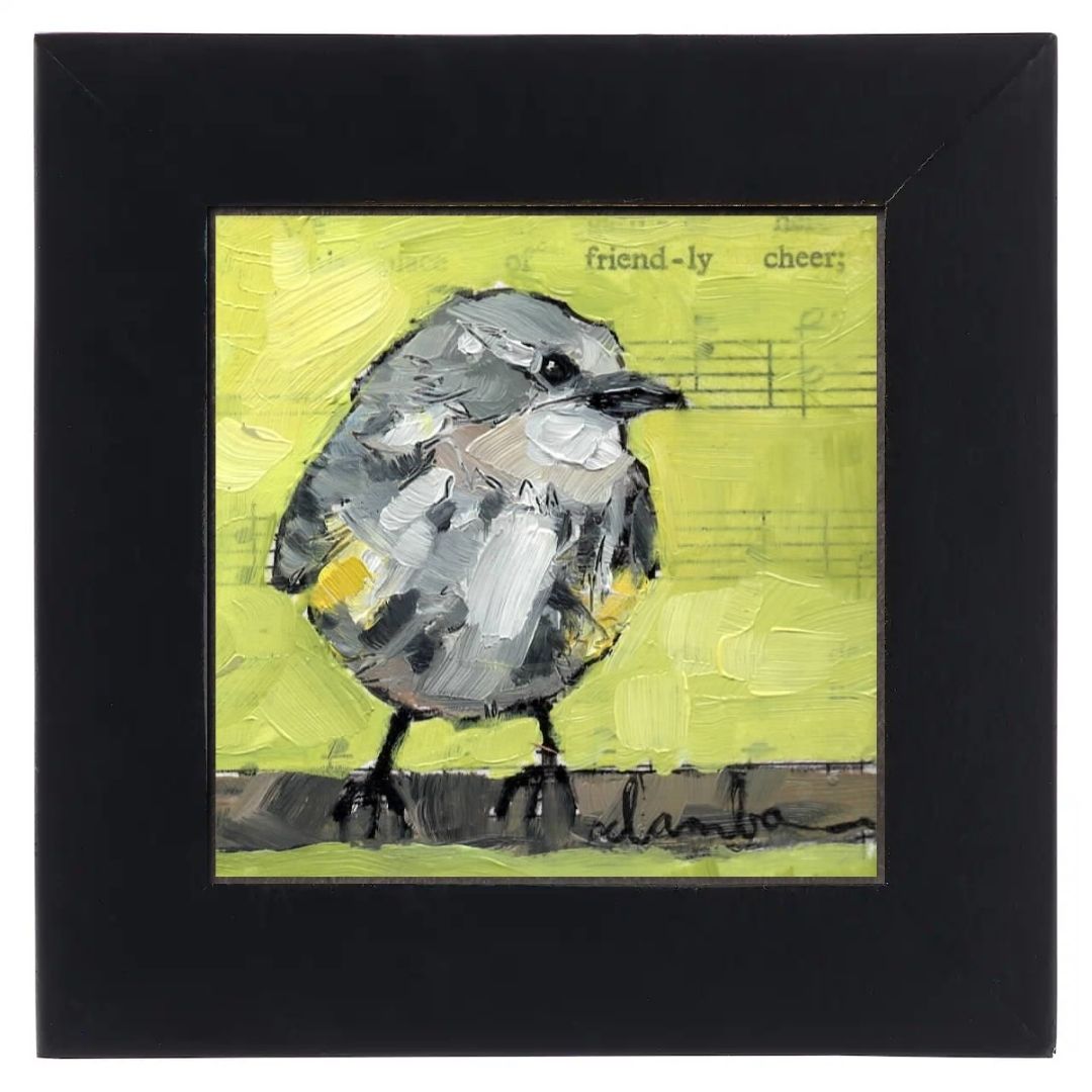 Nature-inspired original oil paintings. These charming 2.5x2.5" paintings are specially crafted for their frames and feature songbirds, landscapes, flowers, and more.
